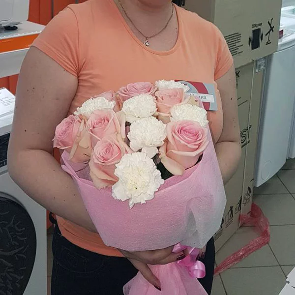 ОТЗЫВЫ О БУКЕТЕ «Аромат счастья – букет с розовыми розами и белыми гвоздиками»